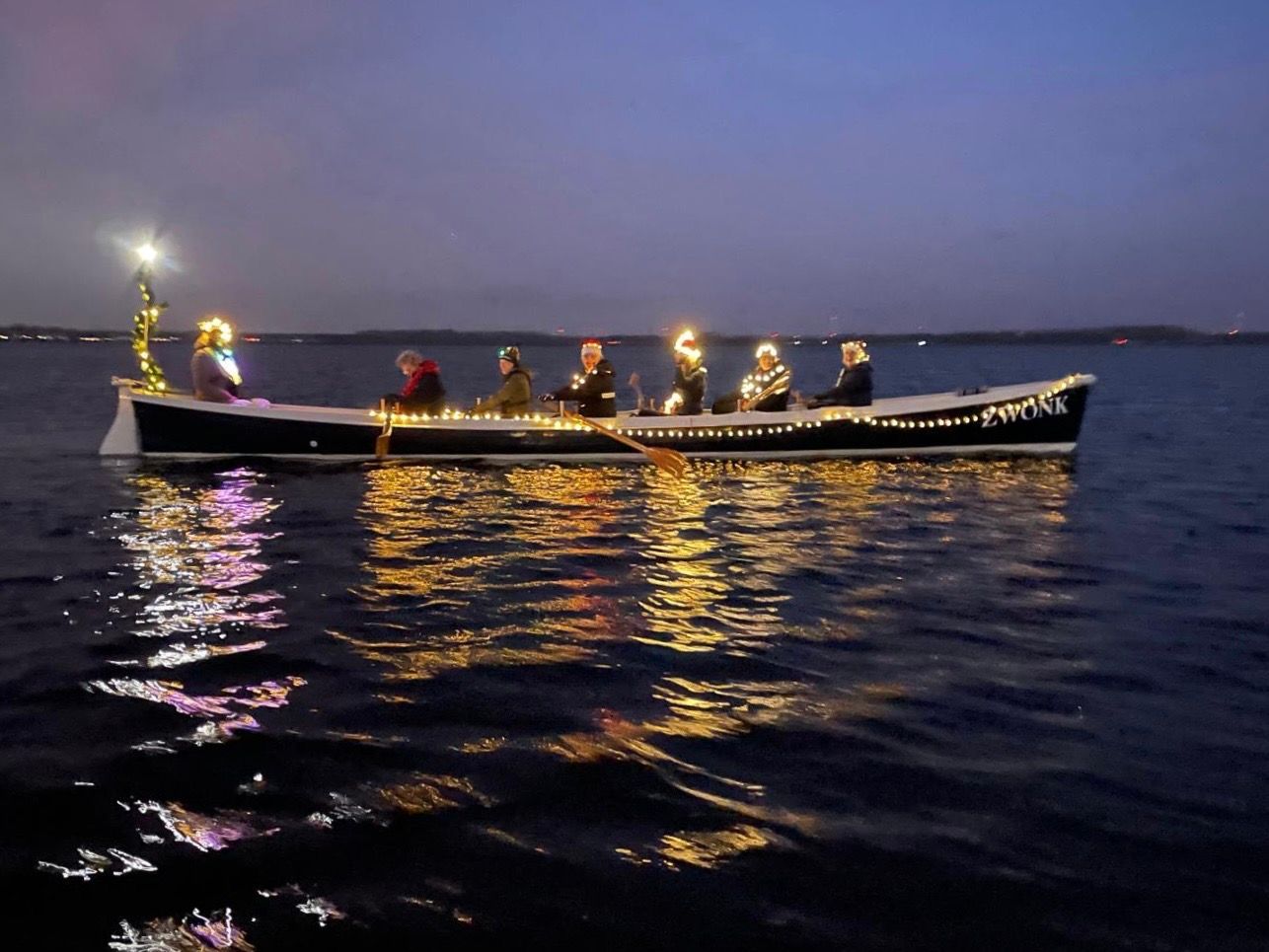 Hoe mooi was't woensdag 13 december. jl. Traditie getrouw de lichtjestocht op het Gooimeer. De gigs versierd met kerstverlichting, zo ook de roeiers/sters. Na onthaal met warme chocolade melk en kerstkransje met 3 gigs de haven uit, het Gooimeer op. Een feeeriek schouwspel. Helder weer, weinig wind, heerlijk ontspannen roeien. Af en toe klonk er zelfs kerstmuziek over het water. Na een uurtje een pauze, aanleggen bij de Riva Wine Lounge voor een warm borrelhapje en drankje. Reuzegezellig. Na een half uurtje terug naar de haven. De boten van versiering ontdoen en alles opruimen. 'T was een mooie heerlijke roeiavond met een mix van recreanten en wedstrijdroeiers. Volgend jaar weer en hopelijk ook weer met 3 gigs. Brigit Majoor, namens De tourcommissie.