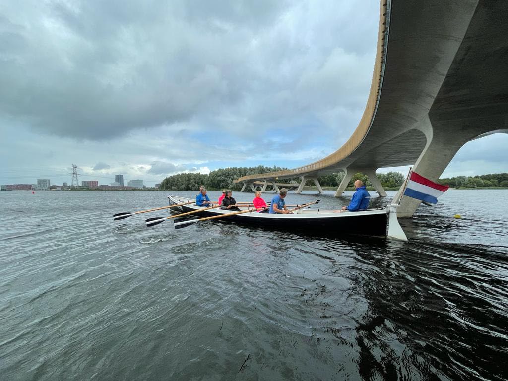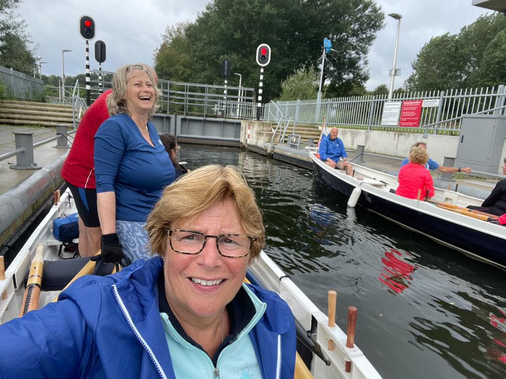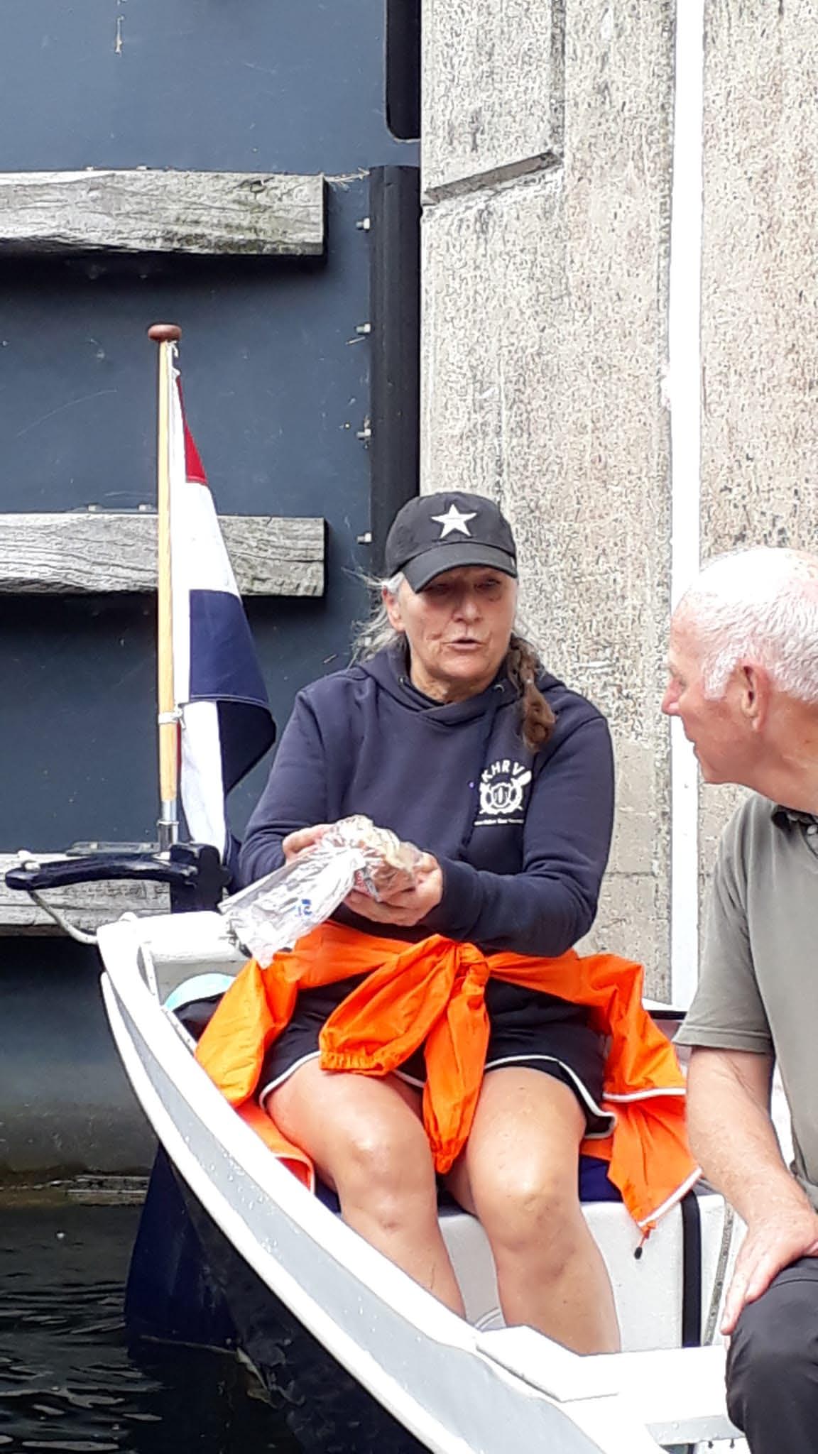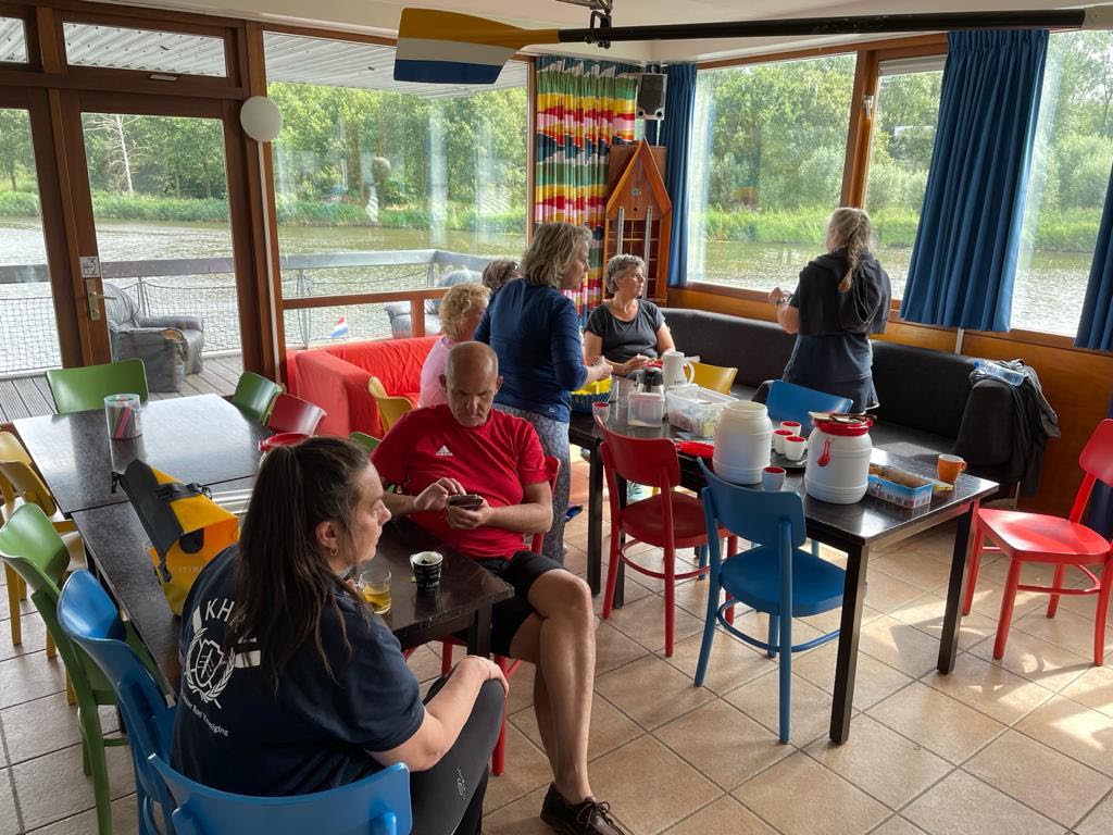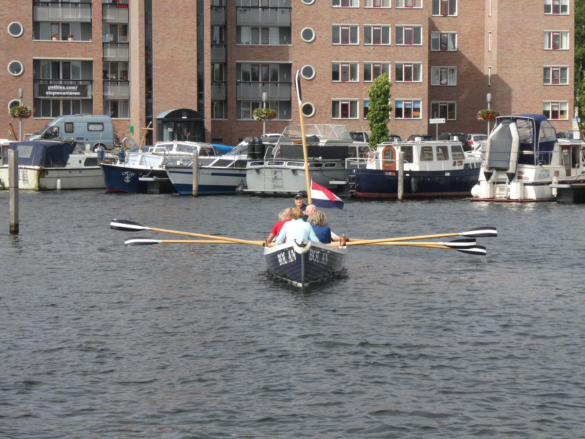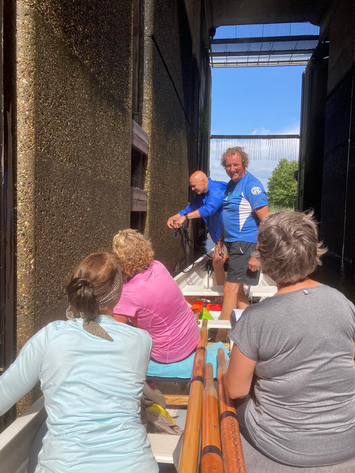 Via drie sluizen, een lunchstop in Almere Stad en een koffie- en theestop bij roeivereniging Pampus in Almere waren we na 26 kilometer roeien precies op schema weer terug in onze thuishaven Huizerhoofd.”