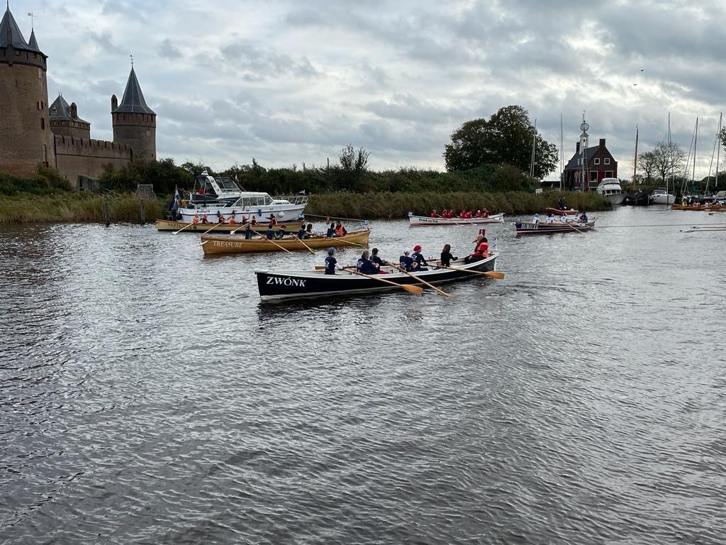 Het is de finale van het NK. Per dames race strijden 44 sloepen en 21 gigs om de punten, per heren race 80 sloepen en 20 gigs =165 teams! Veel dus. Voor de Koninklijke in Muiden was het de 31ste keer, met 80 vrijwilligers een uitstekend georganiseerd evenement.