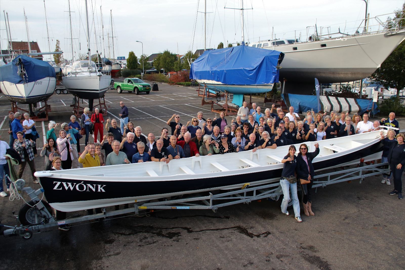 aan de Ambachtsweg 65 te Huizen, de 3e Cornish Pilot Gig gedoopt en te water