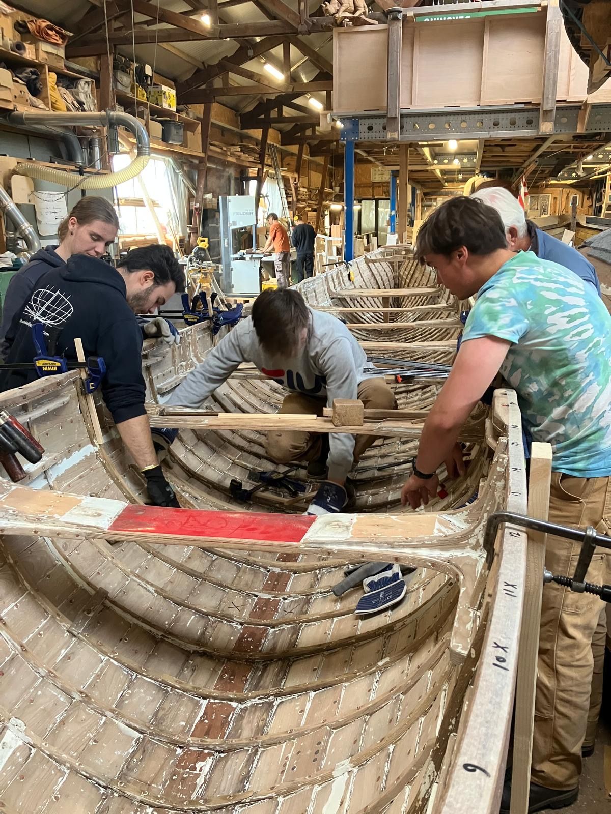 Vandaag is er een grondige schoonmaak uitgevoerd en zijn diverse kleine werkzaamheden afgerond. Gedurende de afgelopen week zijn er ook weer een aantal nieuwe spanten in de gig geïnstalleerd. Inmiddels zijn er nu meer dan twintig spanten vervangen. Ook zijn er weer een aantal nieuwe spanten gebogen, hoewel dit proces deze keer wat minder goed was verlopen. Uiteindelijk zijn er slechts vier extra nieuwe spanten gebogen. In de komende periode zal er een aanzienlijke hoeveelheid spanten worden genageld, een taak die door twee personen zal worden uitgevoerd.
