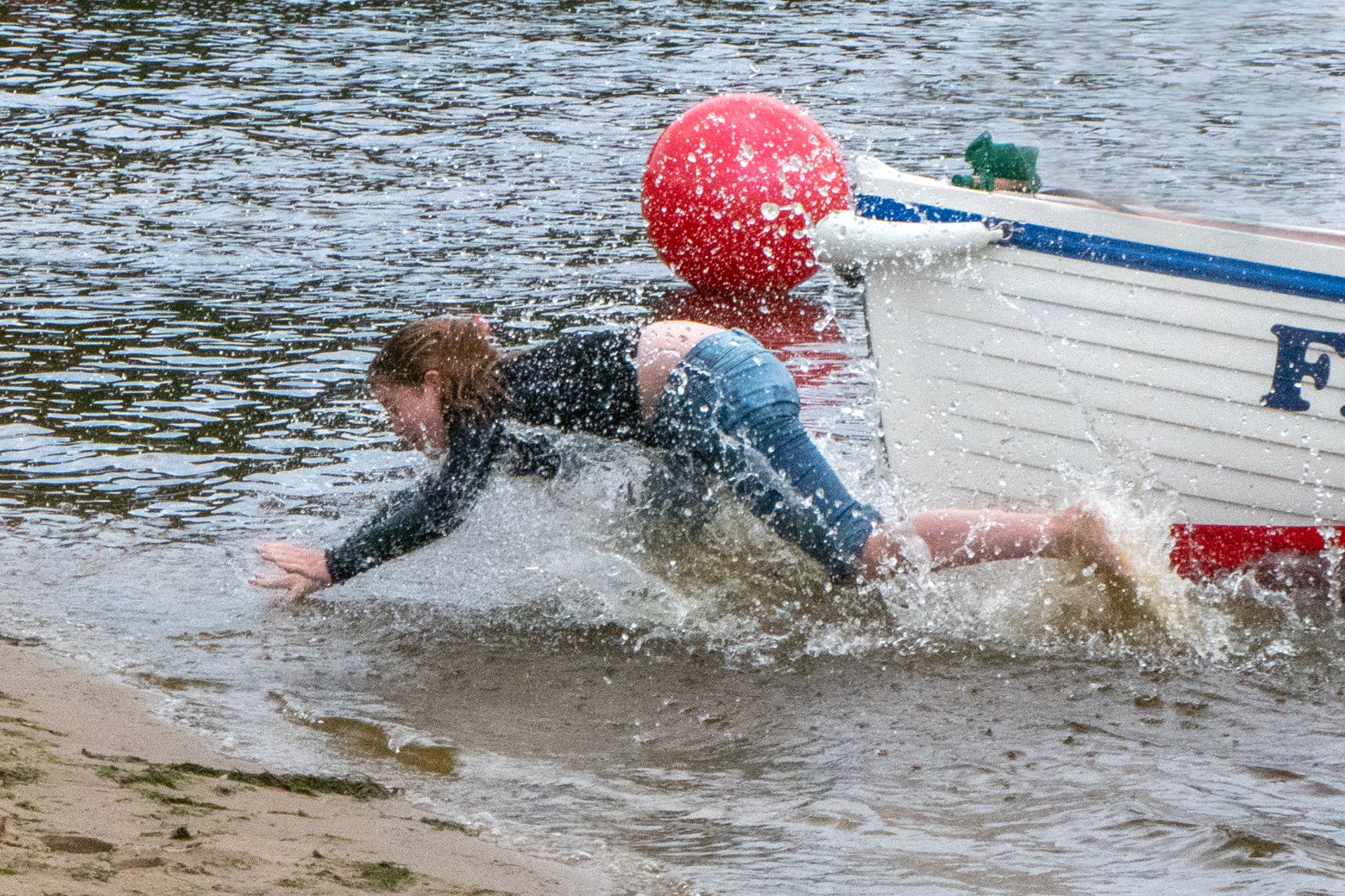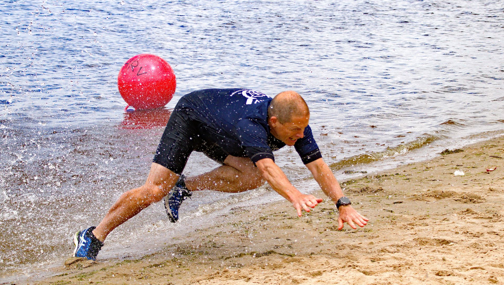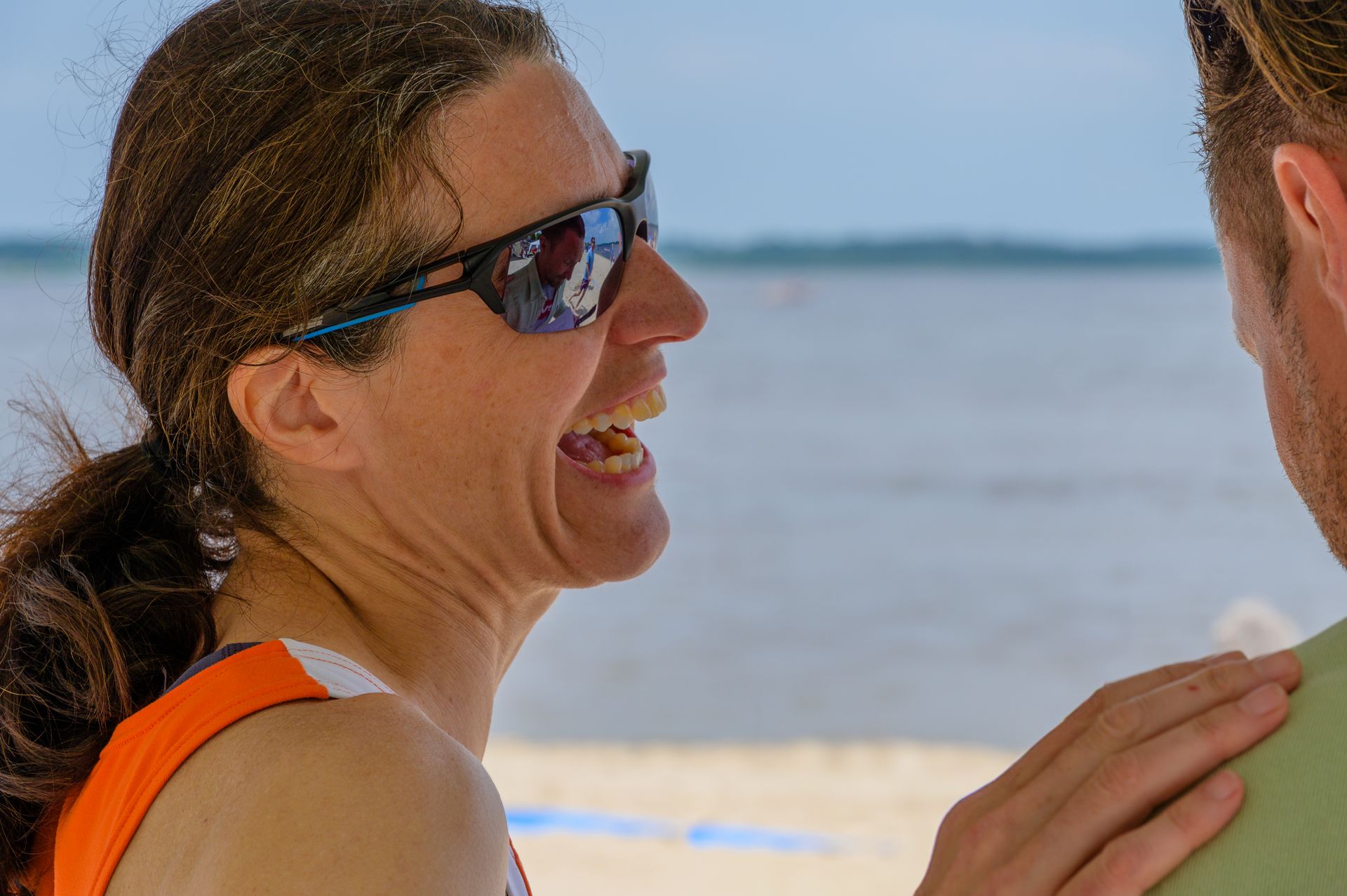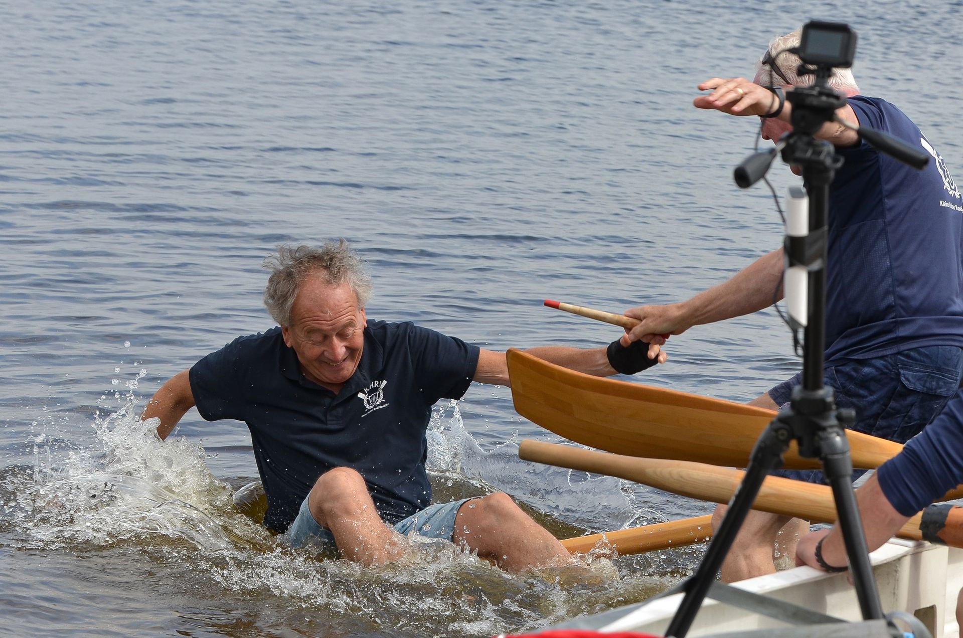 De eerste wedstrijd is een estafette: twee teams roeien na elkaar in dezelfde boot een ronde van 2,5 kilometer. Start, wissel en finish zijn op het strand: per team is er telkens 1 roeier die vanaf het strand naar de boot rent en bij de wissel uit de boot naar het strand komt. Dat leverde bijzondere acties op!