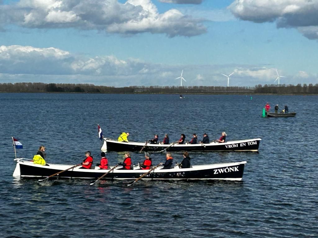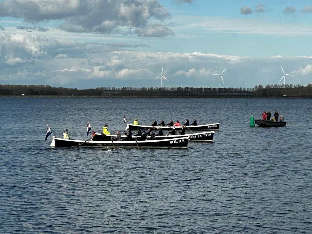 “Het was een prachtige dag waar, door ook veel toeschouwers, enorm van werd genoten!”, laat voorzitter Erica de Vries weten. “Na de laatste finish werden onze drie gigs: de Bol An, de Zwonk en de Vrom en Tom weer terug geroeid naar onze thuishaven ‘t Huizerhoofd.”
