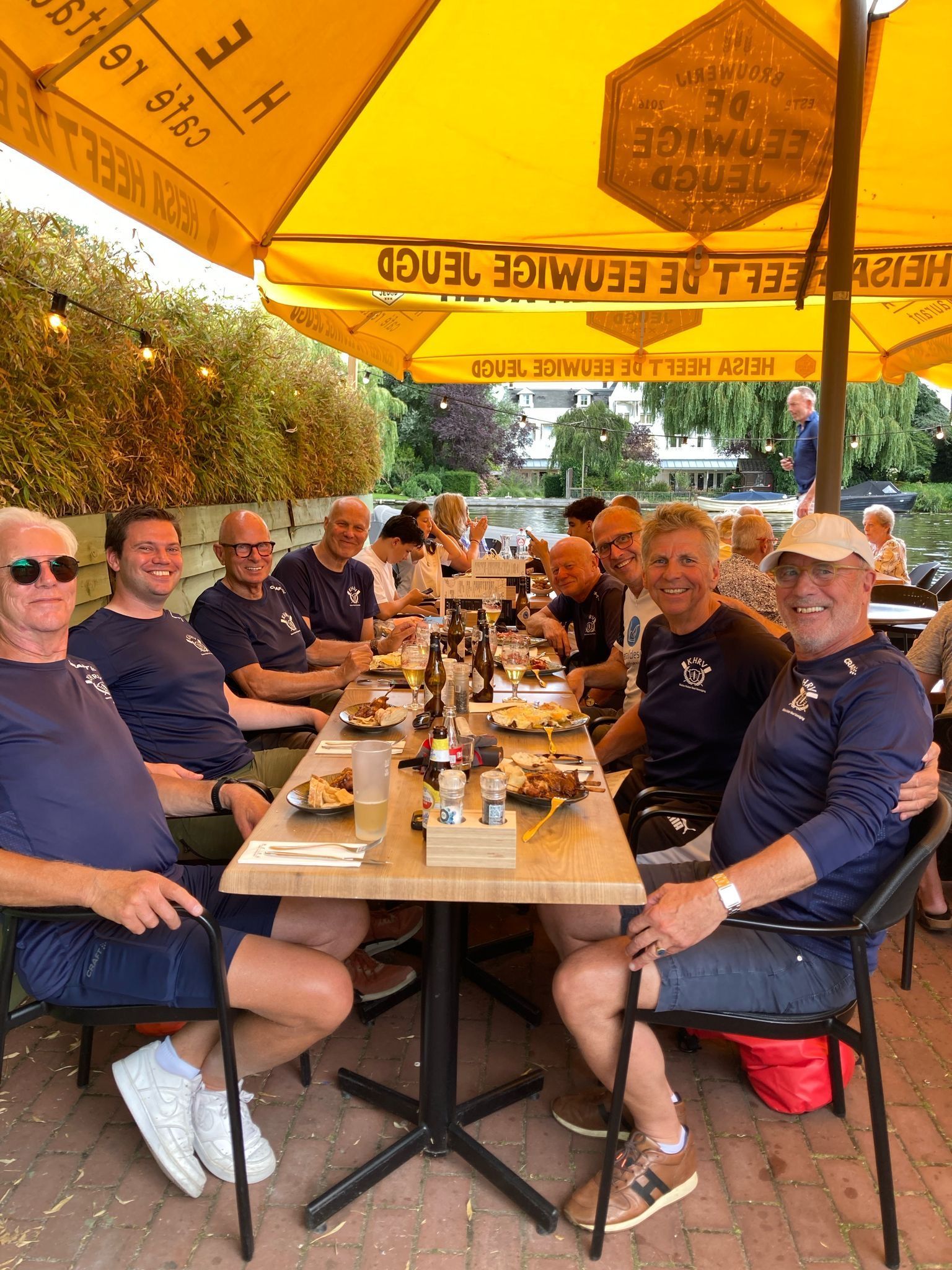 Na ongeveer 30 kilometer roeien onder een stralende zon konden ze de gig veilig achterlaten bij roeivereniging RIC, waar een nieuwe bemanning de volgende ochtend zou arriveren om weer terug naar De Hoef te roeien. Het was een fantastische dag vol afwisseling, gezelligheid en prachtige indrukken – een tocht om niet snel te vergeten.