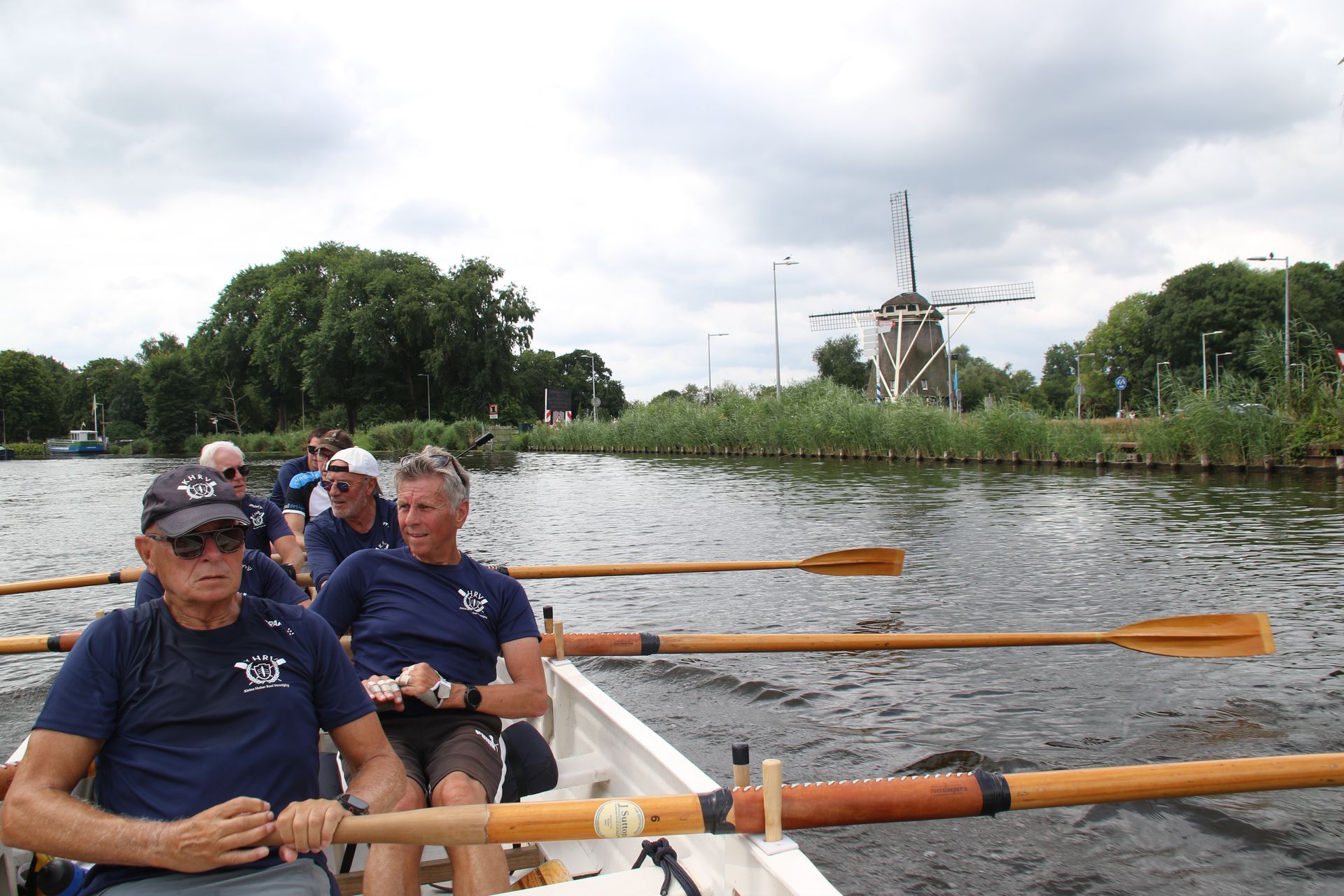 Op zaterdag 12 juli jl maakte onze vaste roeigroep Vamos een onvergetelijke toertocht over de Amstel. De dag begon in De Hoef, waar de boot te water werd gelaten en team Vamos zichzelf meteen trakteerden op heerlijke zelfgebakken appeltaart en koffie, een perfecte start van de dag. Vanaf daar volgden ze de kronkelende loop van de rivier richting Amsterdam, omgeven door het karakteristieke Hollandse landschap: wuivend riet, grazende koeien en schilderachtige boerderijen.