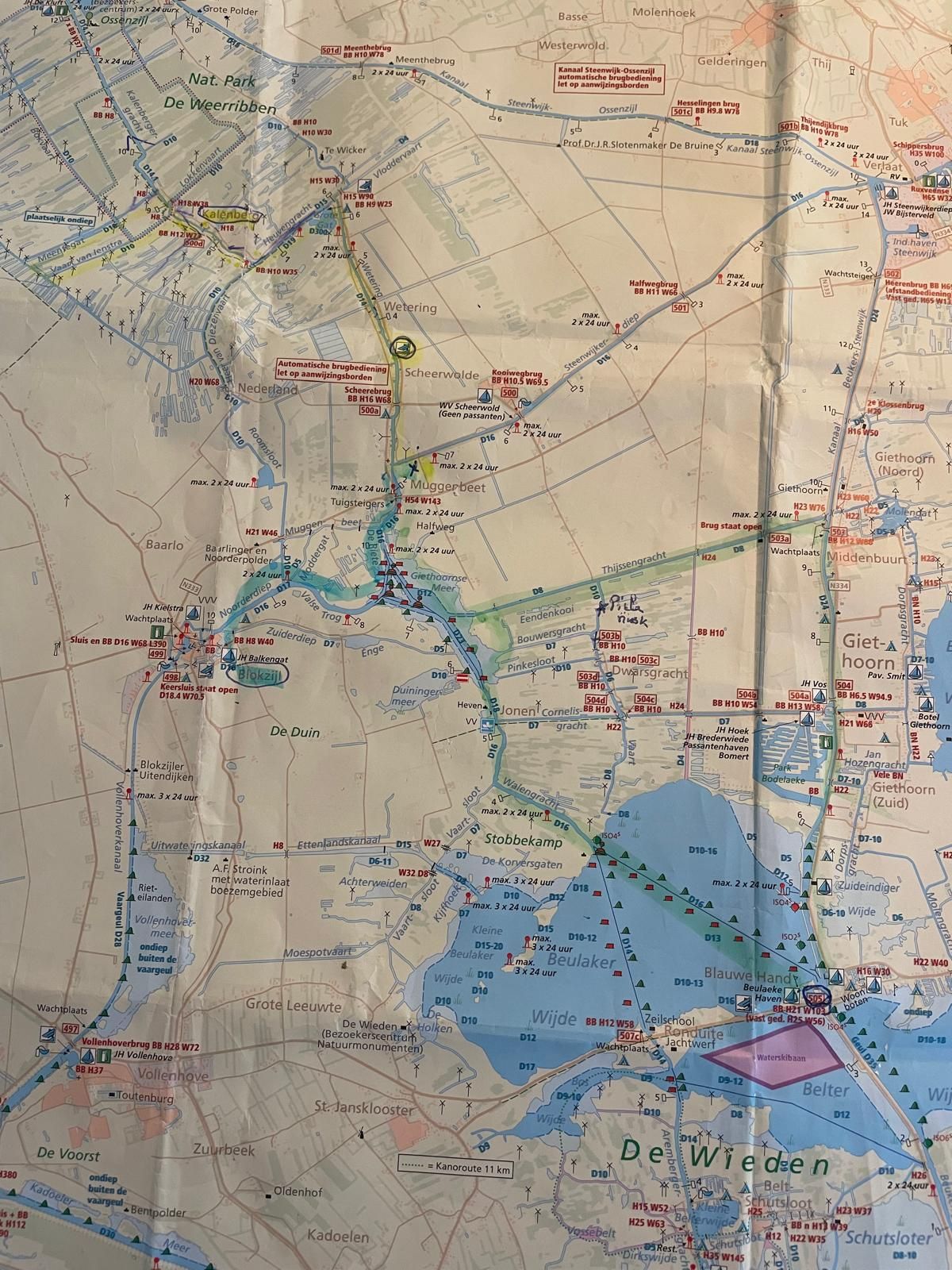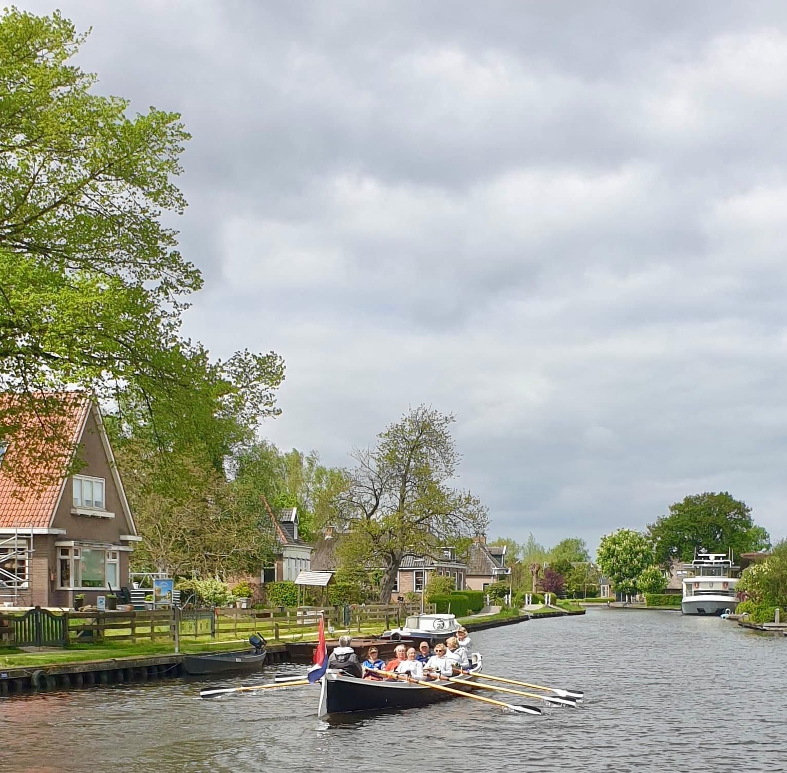 Zaterdag met prachtig weer vroeg het water op, twee meren over en ook een leuke, spannende route door smalle vaartjes. Lunch in Wanneperveen, waarna de wind flink aantrok. De terugtocht voerde ons langs Giethoorn en na ruim 25 pittige km’s waren we weer thuis in Scheerwolde.